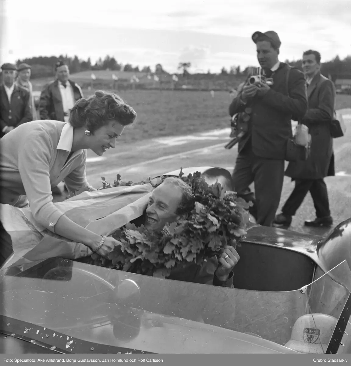 Lagerkransad segrare. Gelleråsen, Karlskoga. 1957-08-26