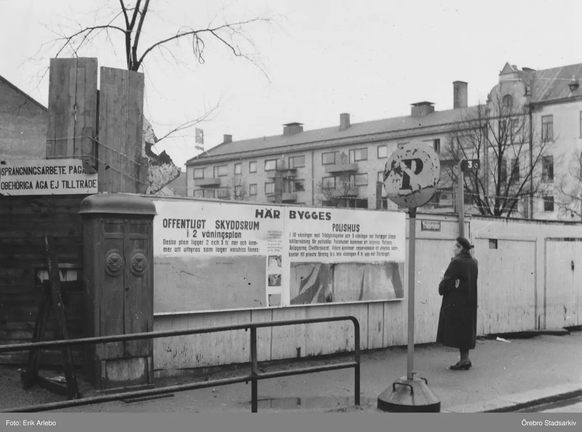 Staket runt tomt där polishuset byggs, 1955-04-29