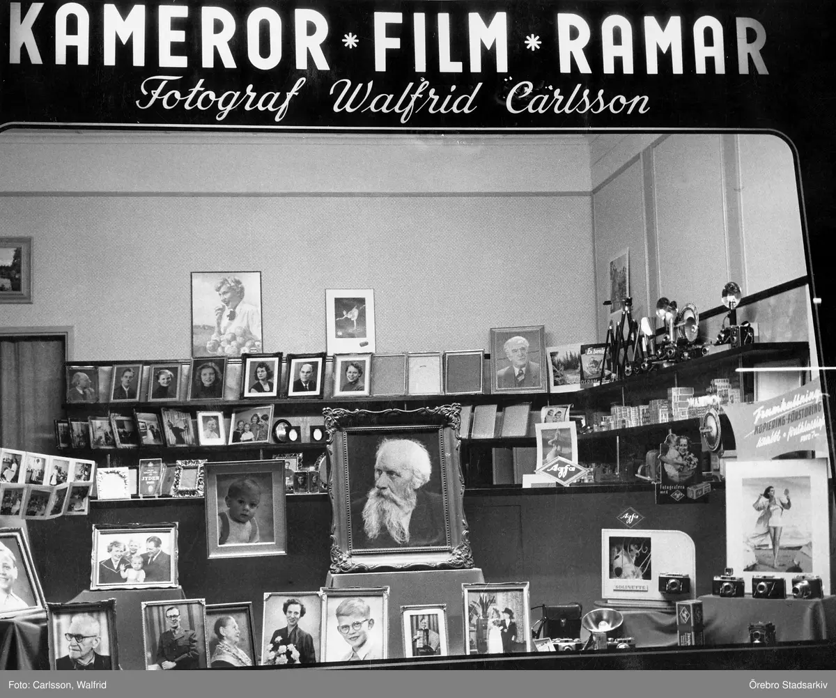 Skyltfönster till Walfrid Carlssons fotoaffär, 1950-tal