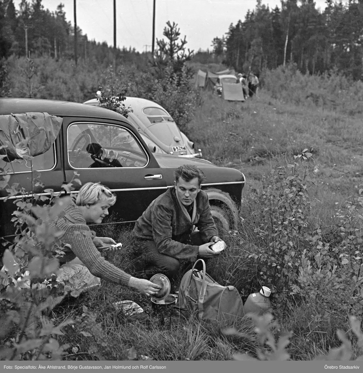 Matlagning i dikeskanten vid Gelleråsen, Karlskoga. 1960-08-07