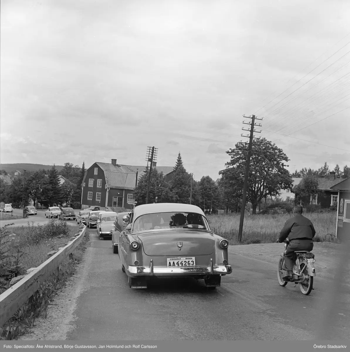 Karavan med raggarbilar. Gelleråsen, Karlskoga. 1960-08-07