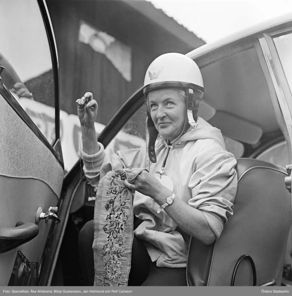 Handarbete i hjälm. Gelleråsen, Karlskoga. 1960-08-07