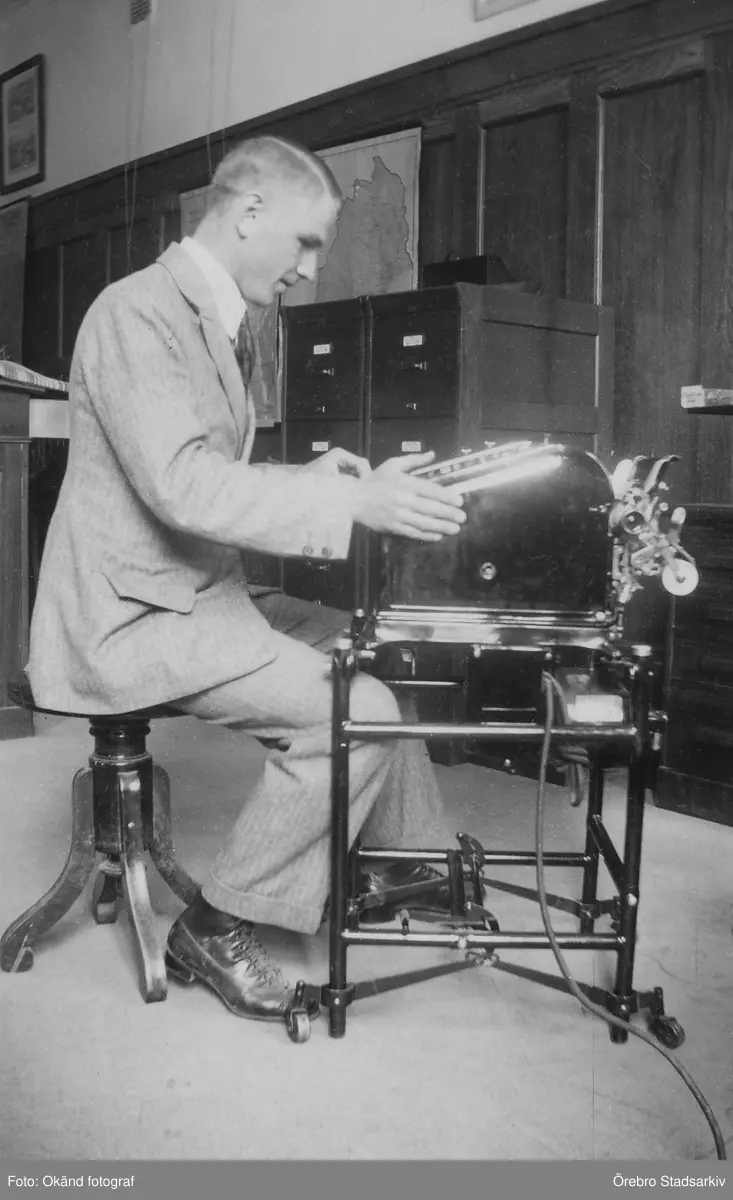 Arbete med räknemaskin på Marks skofabriks kontor, ca 1915