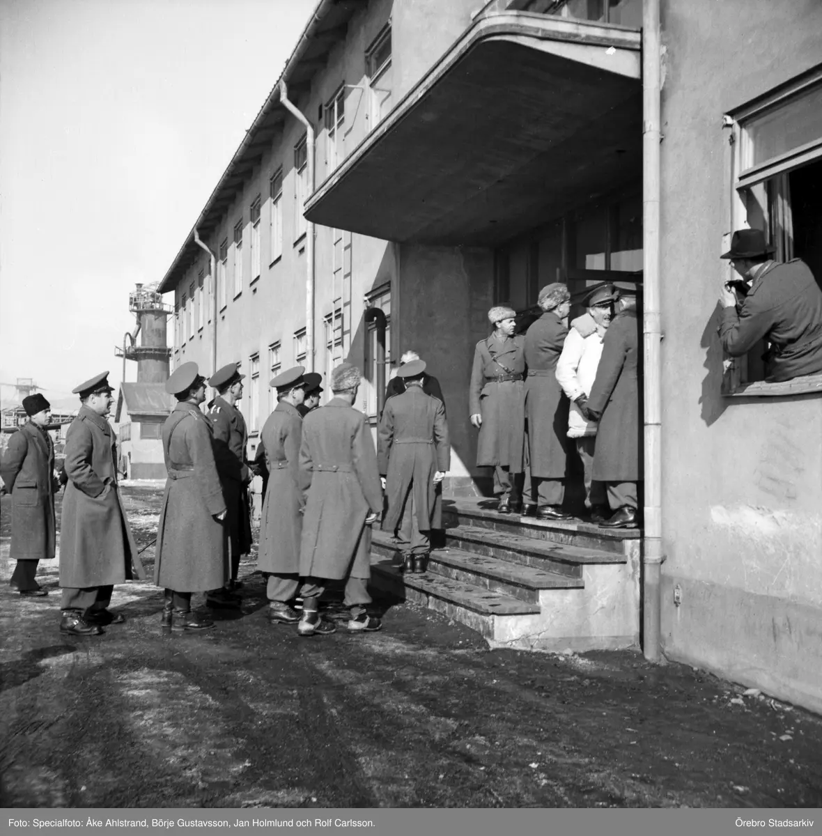 Fotograf i fönster vid prinsbesök i Kvarntorp. 1946-03-16