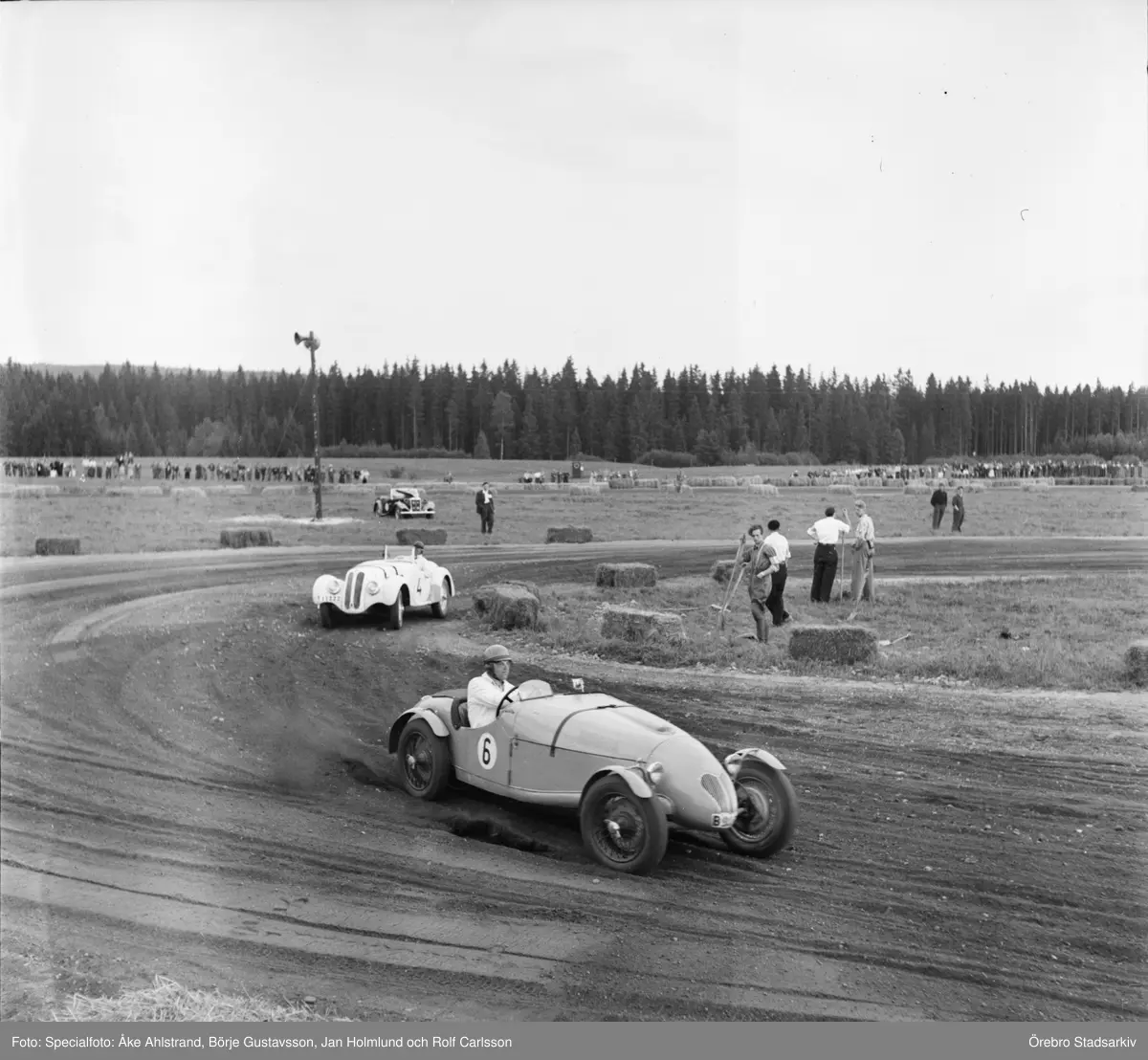 Försiktig kurvtagning på Gelleråsen, Karlskoga. 1950-06-04