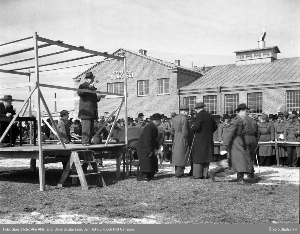 Kreatursauktion på slakteriet i Ormesta, 1946-04-13