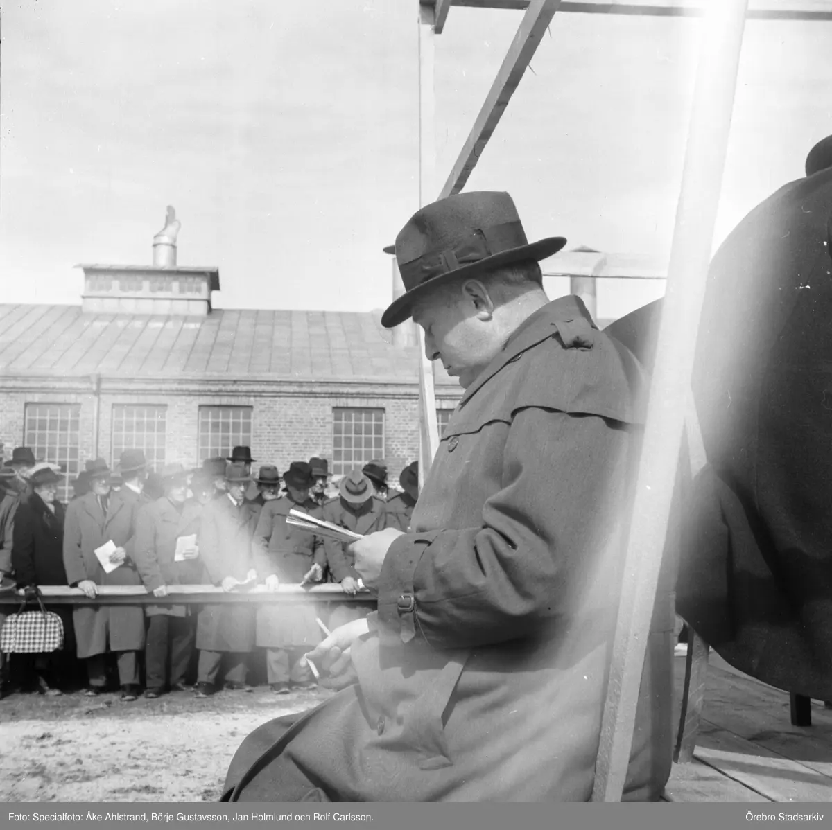 Läsning i auktionkatalogen på Ormesta slakteri, 1946-04-13