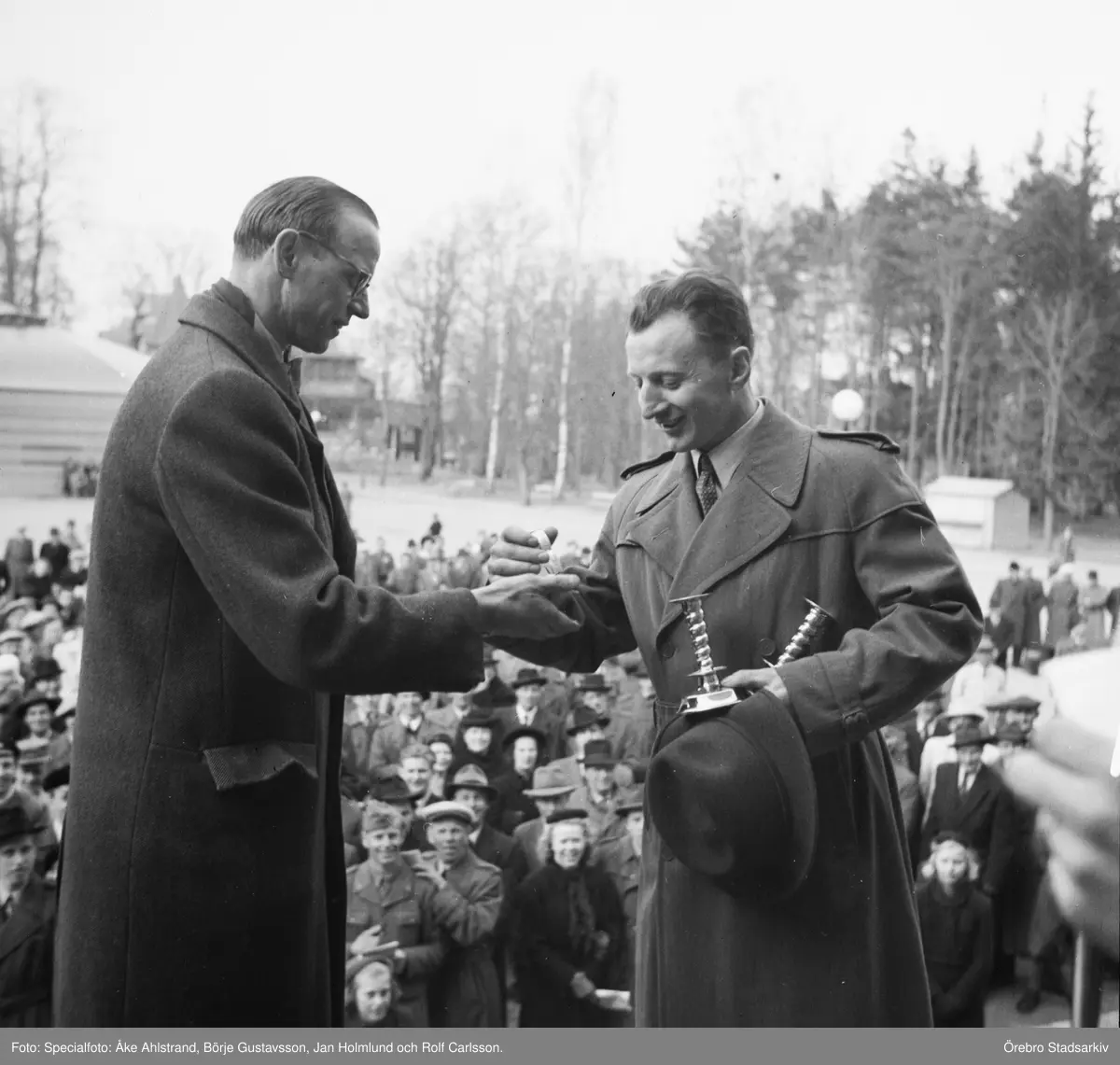 Titel: Prisutdelning vid terränglöpning i Brunnsparken, 1946-04-14