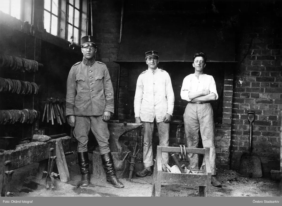 Smeder i smedjan på Svea Trängkår, Älvtomtagatan, 1924