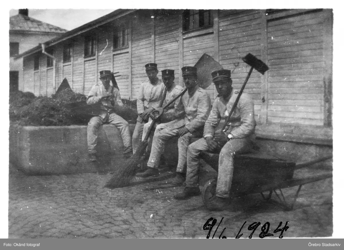 Värnpliktiga vid gödselstack på Svea Trängkår, Älvtomtagatan, 1924