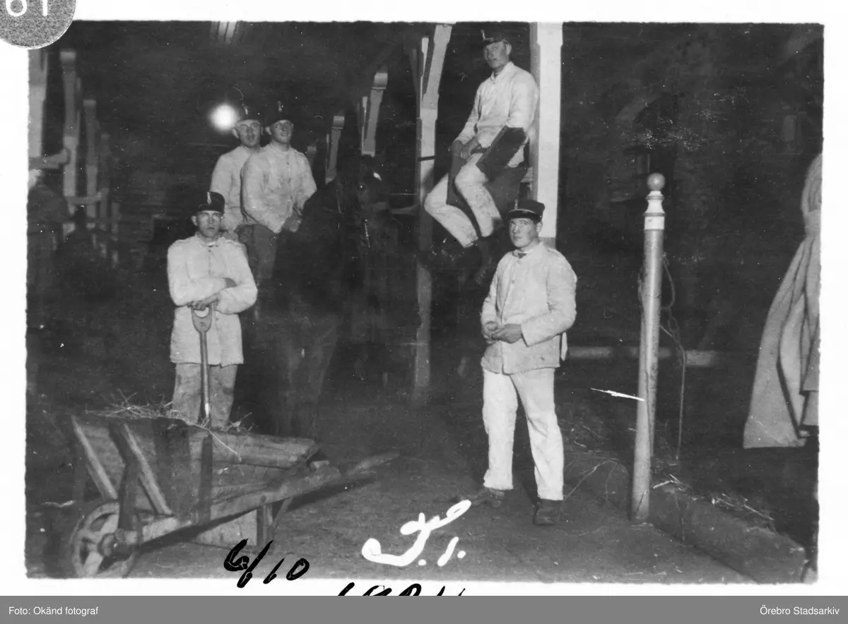 Värnpliktiga i stallet på Svea Trängkår, Älvtomtagatan, 1924