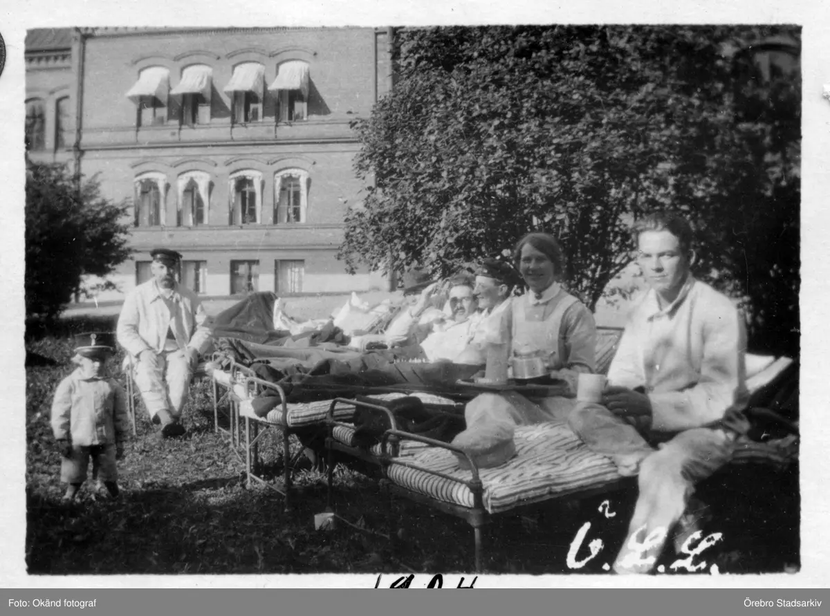 Patienter vilar utomhus på Örebro Centrallasarett, Grev Rosengatan, 1924