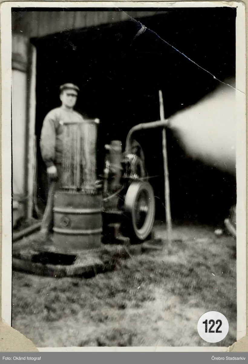Man vid fotogendriven motor i Lia i Frövi, 1935 ca