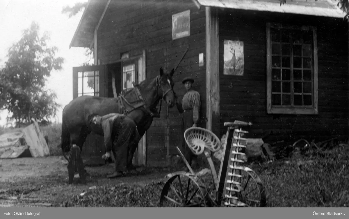 Hovslagare utanför smedjan på Södra gården i Lia i Frövi, 1930-tal