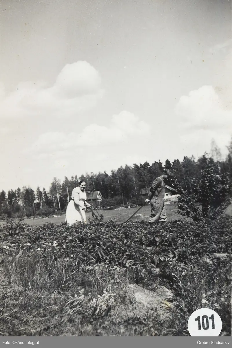 Äldre par ådrar potatislandet på Kullen i Frövi, 1950-tal