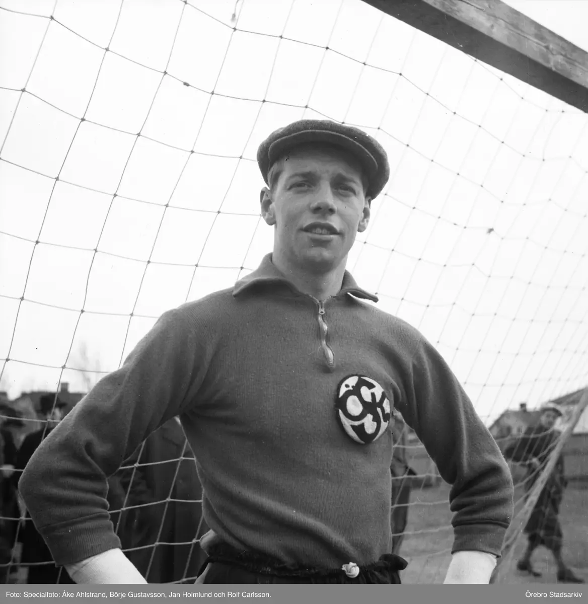 Målvakten vid fotbollsmatchen ÖSK-Taborgsberg på Eyravallen, 1946-03-31