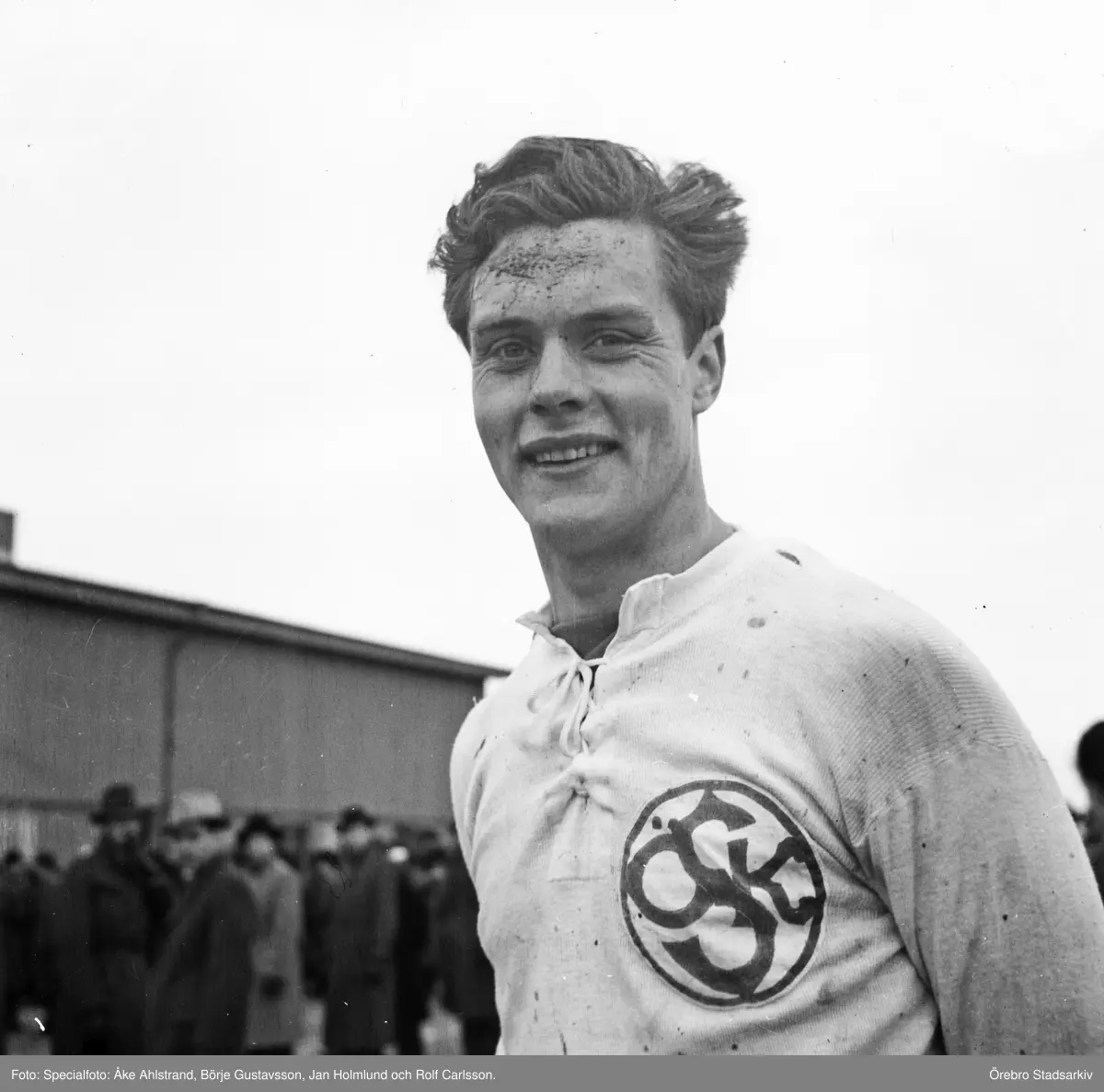 Fotbollsspelare på matchen ÖSK-Taborgsberg på Eyravallen, 1946-03-31