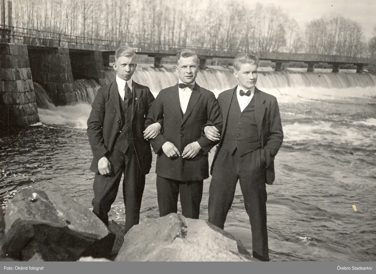 Tre herrar vid Fallen i Karlslund, 1920-tal