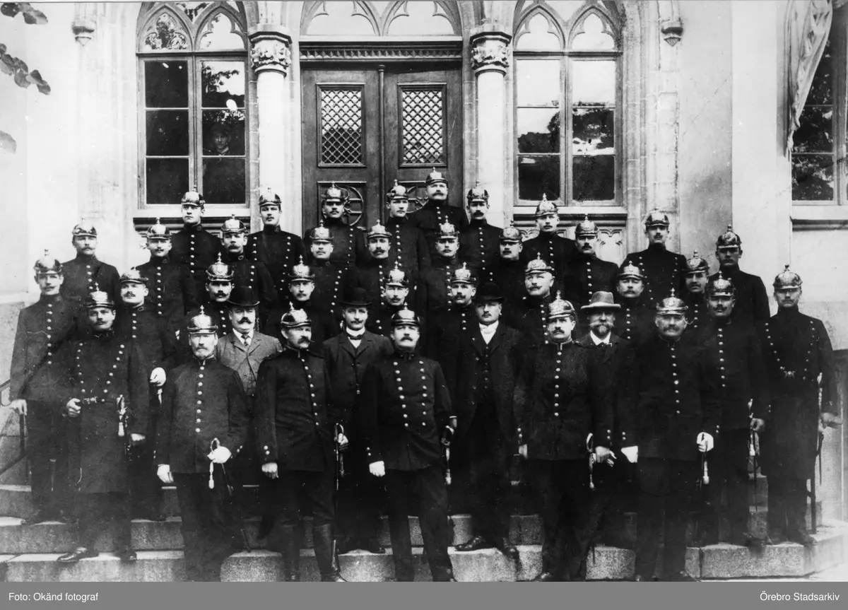 Örebro poliskår på Rådhusets trappa, 1908