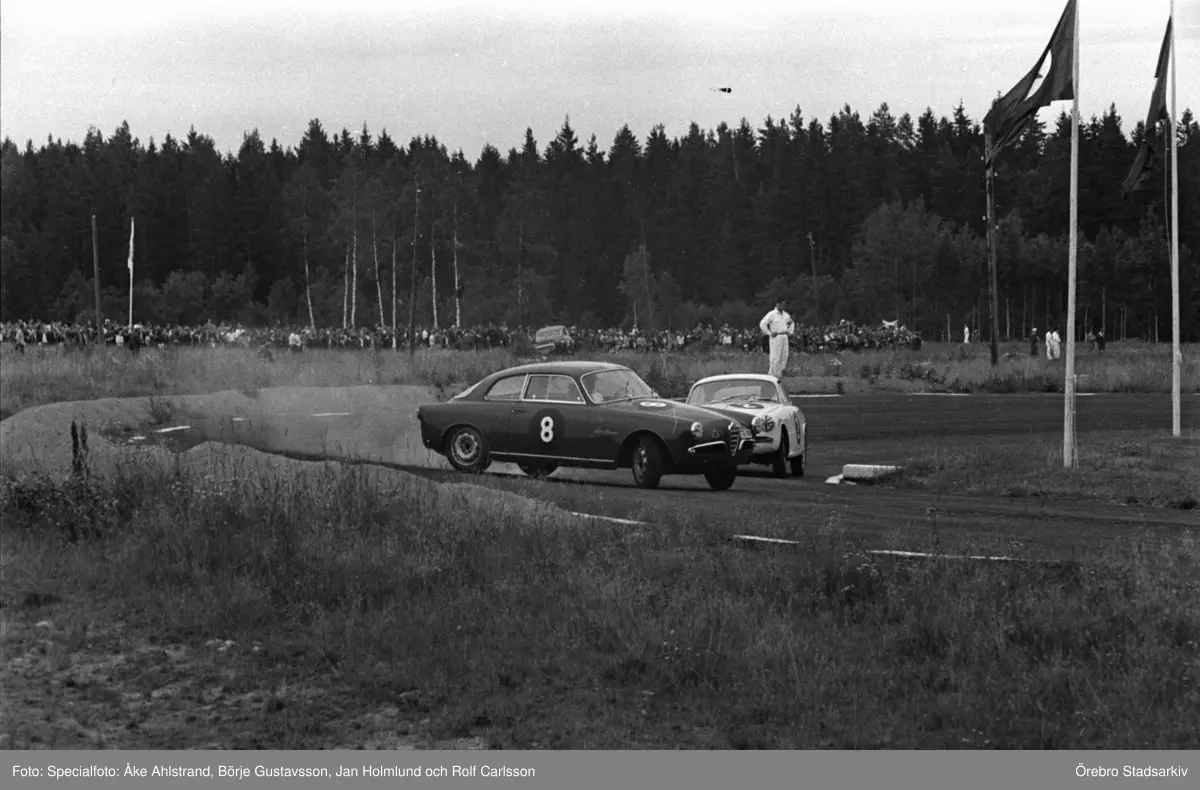 Hård kamp i kurvan. Gelleråsen, Karlskoga. 1960-08-07