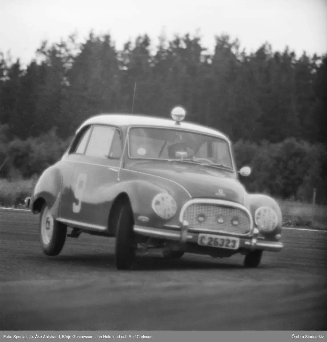 Kurvtagning på tre hjul. Gelleråsen, Karlskoga. 1957-08-26