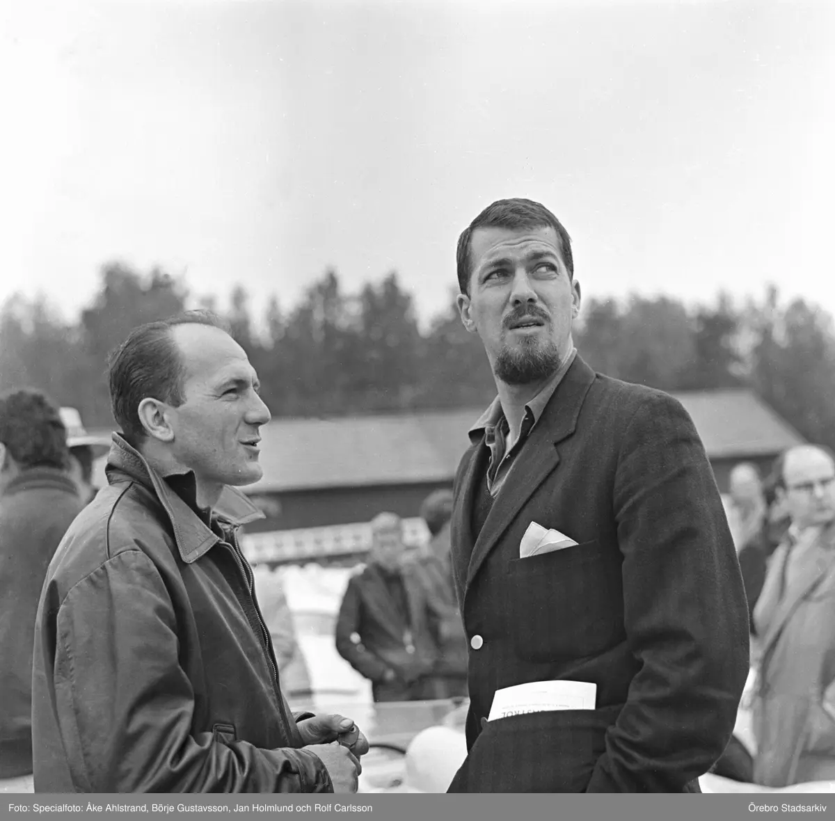Förare i samspråk på Gelleråsen, Karlskoga. 1960-08-07
