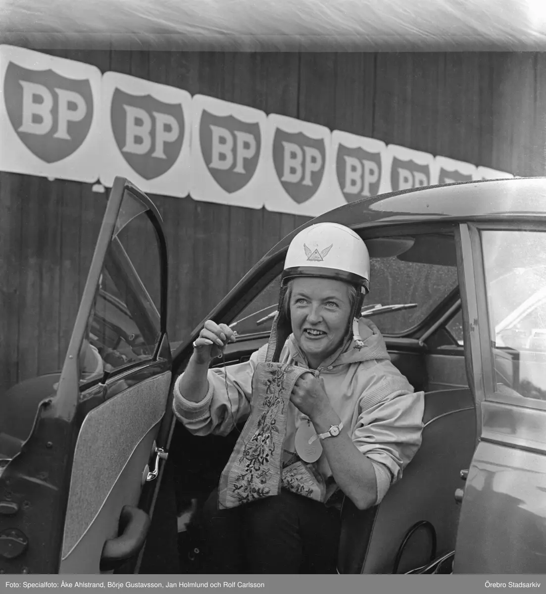 Handarbete och racing hör ihop. Gelleråsen, Karlskoga. 1960-08-07