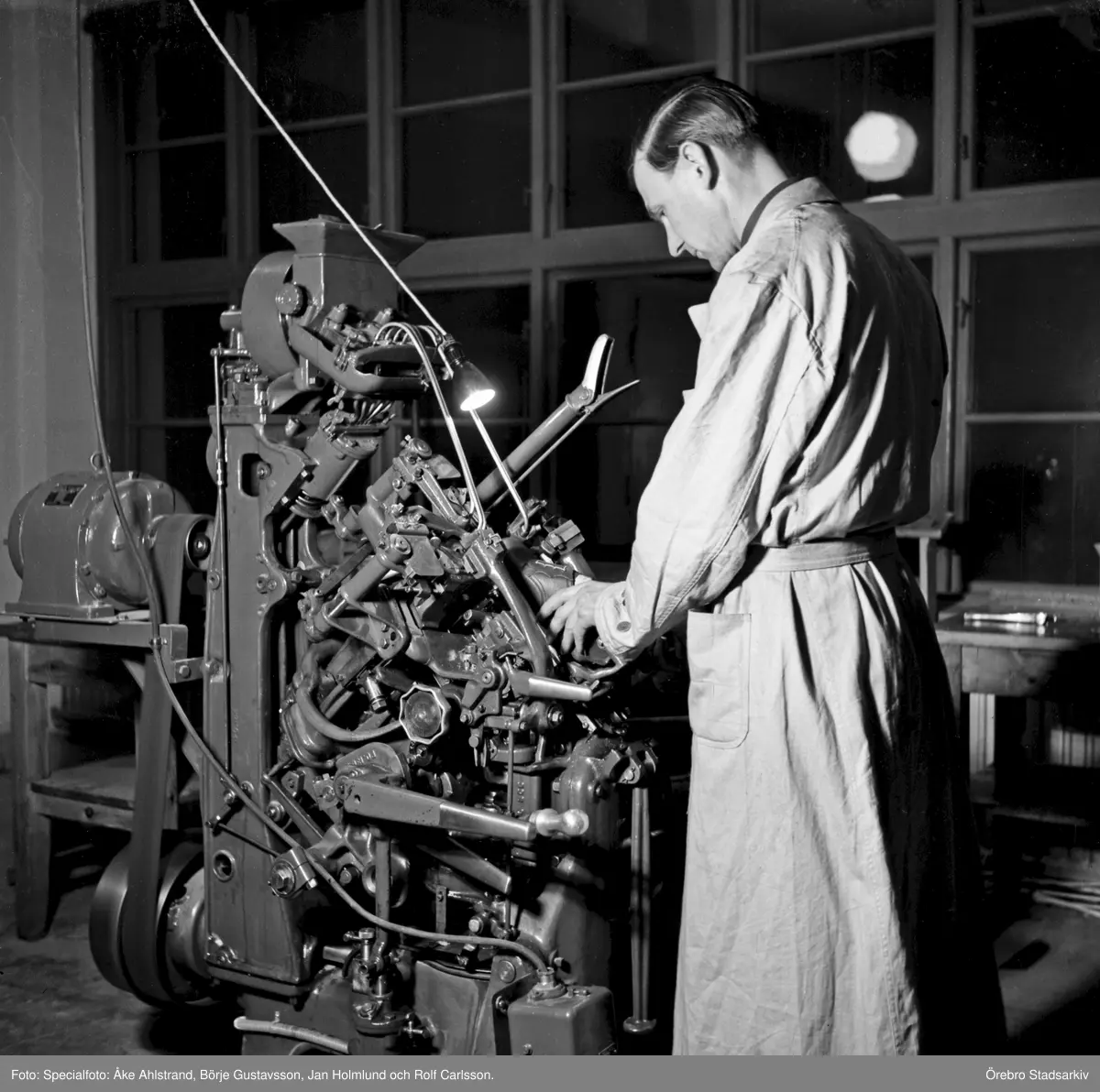 Maskinarbetet på Yrkesskolan på Oscaria. Fabriksgatan 52. 1946-03-07