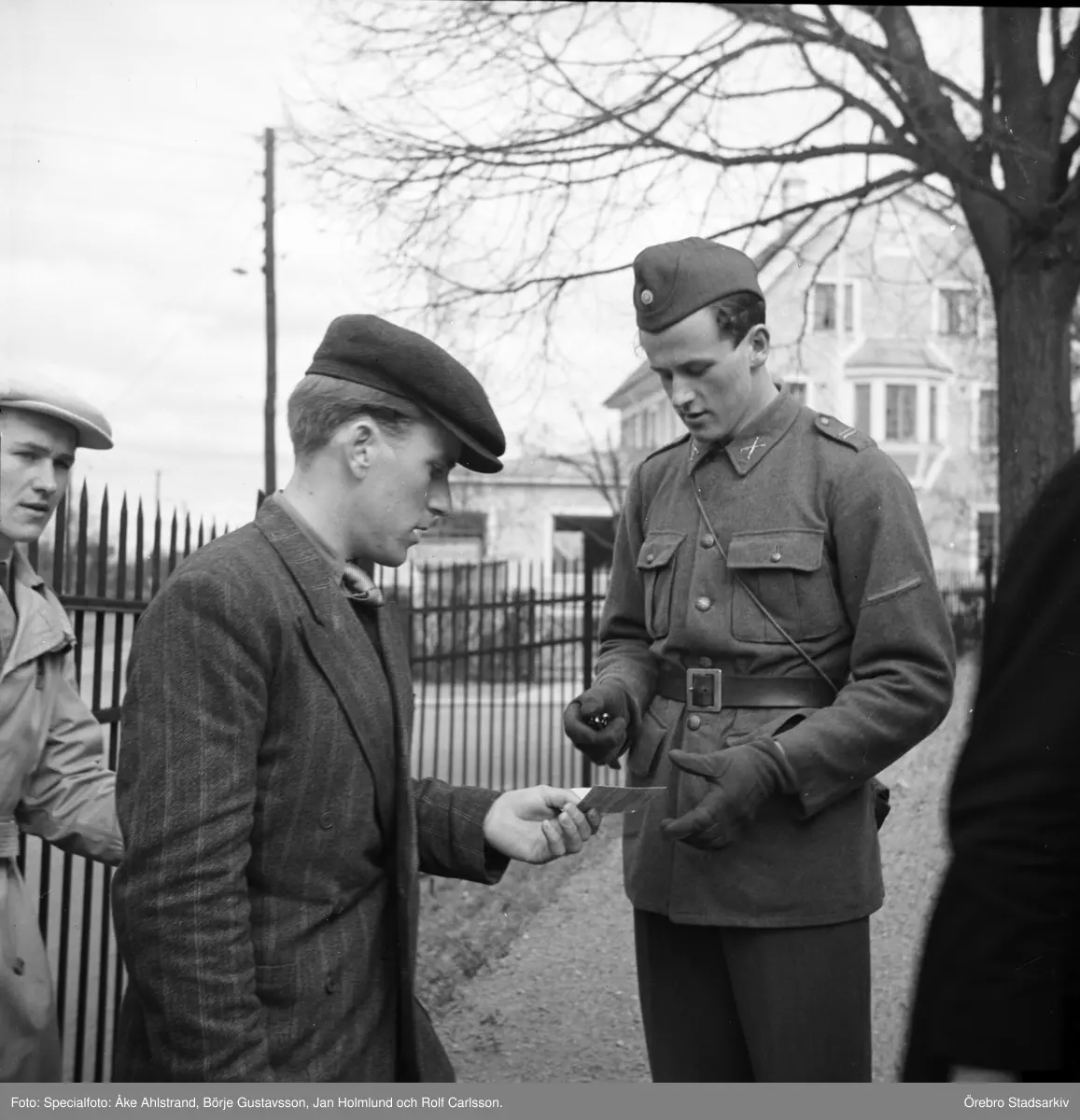 PasserkontrolI av nya rekryter på I3, Grenadjärstaden, 1946-04-08