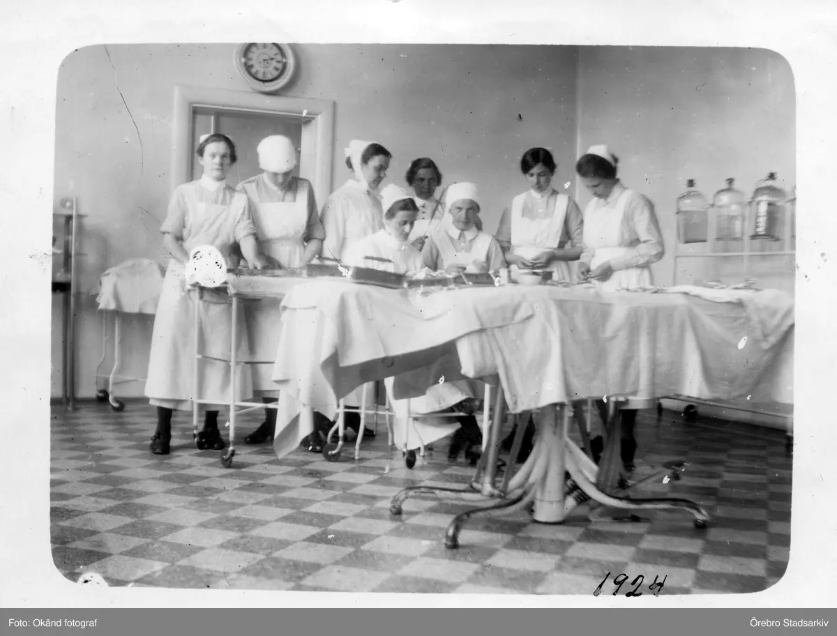 Sköterskor i operationssalen på Örebro Centrallasarett på Grev Rosengatan, 1924