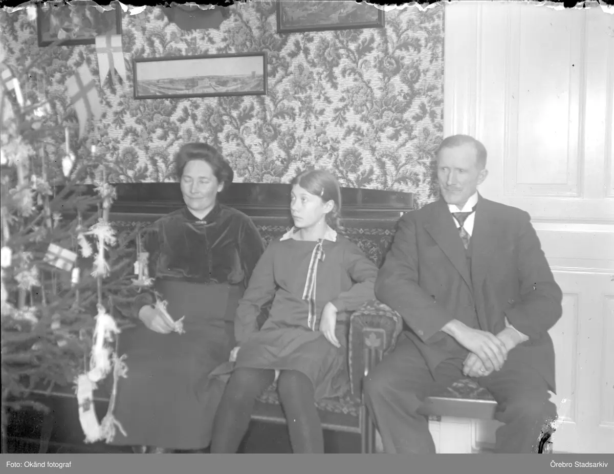 Föräldrar och dotter firar jul i Råsta gård, Stora Mellösa, 1910 ca