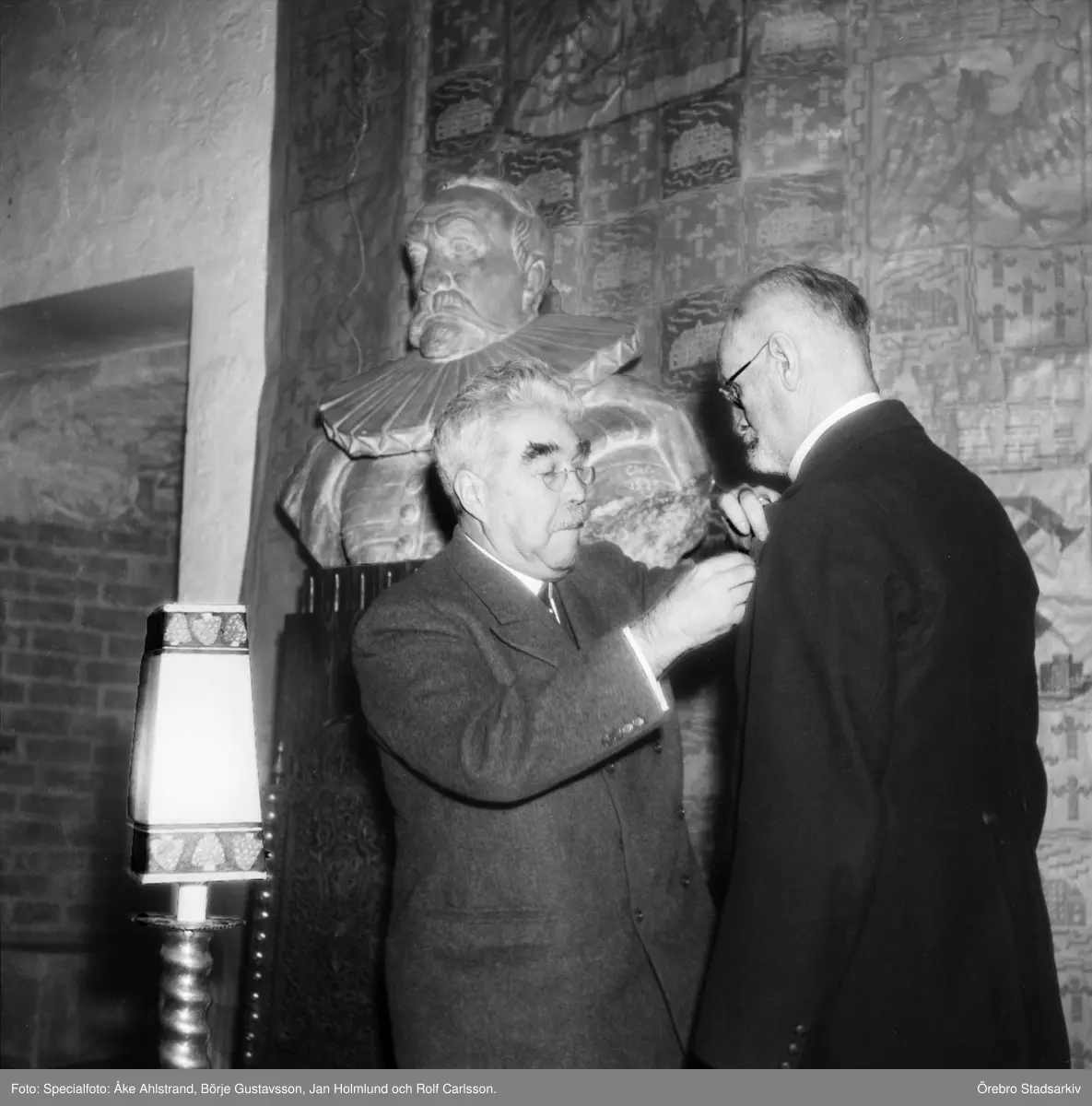 Landshövingen ger medalj på Lantbrukskonferens i Rikssalen på Örebro slott, 1946