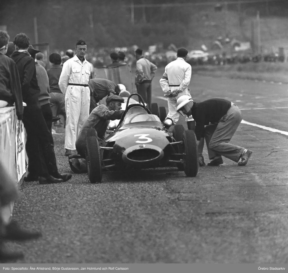 Justering på Whiteheads Lola. Gelleråsen, Karlskoga. 1960-08-07