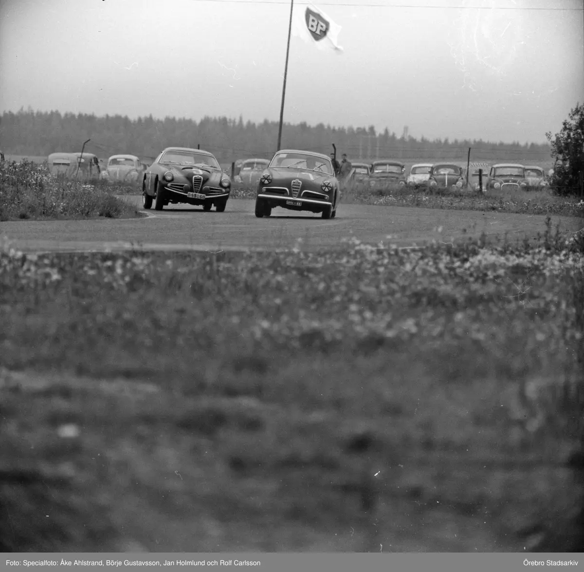 Två Alfor i närkamp på Gelleråsen, Karlskoga. 1956-08-25