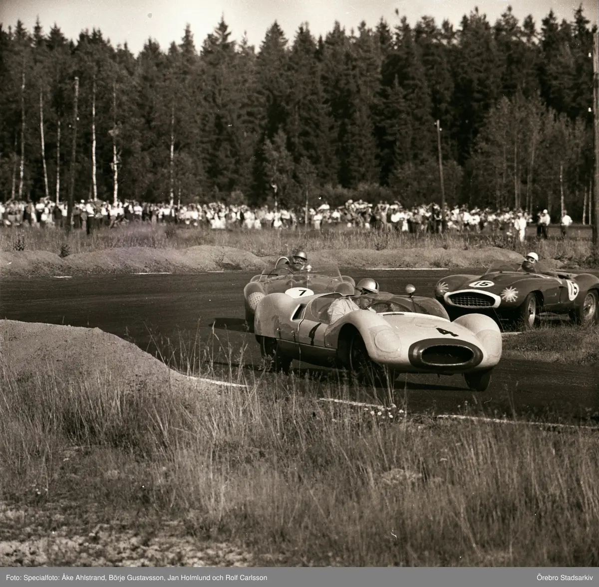 Jagande sportvagnar under Kanonloppet, Karlskoga,1959-08-09