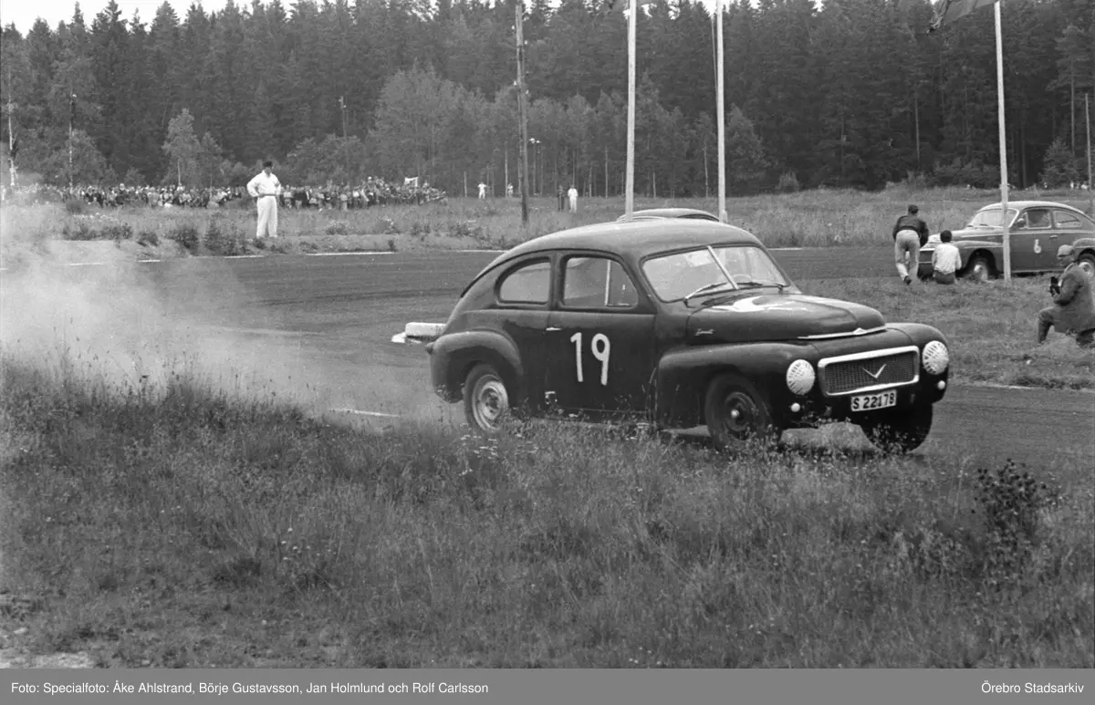 Rykande kurvtagning. Gelleråsen, Karlskoga. 1960-08-07