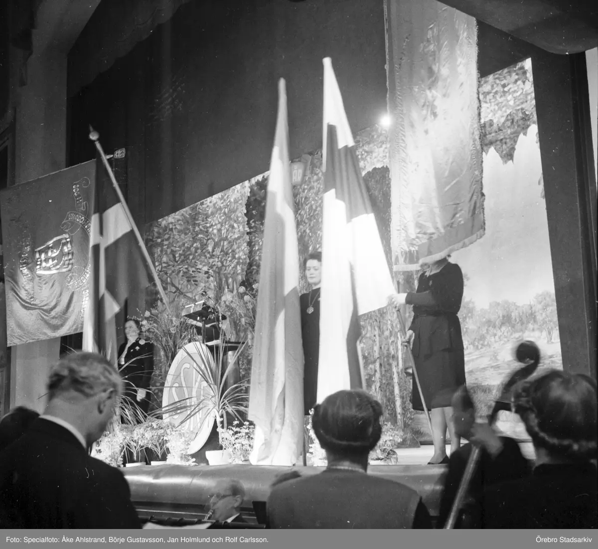 Fanbårare vid SSKF:s jubileum i Örebro Folkets Hus, 1946-04-28