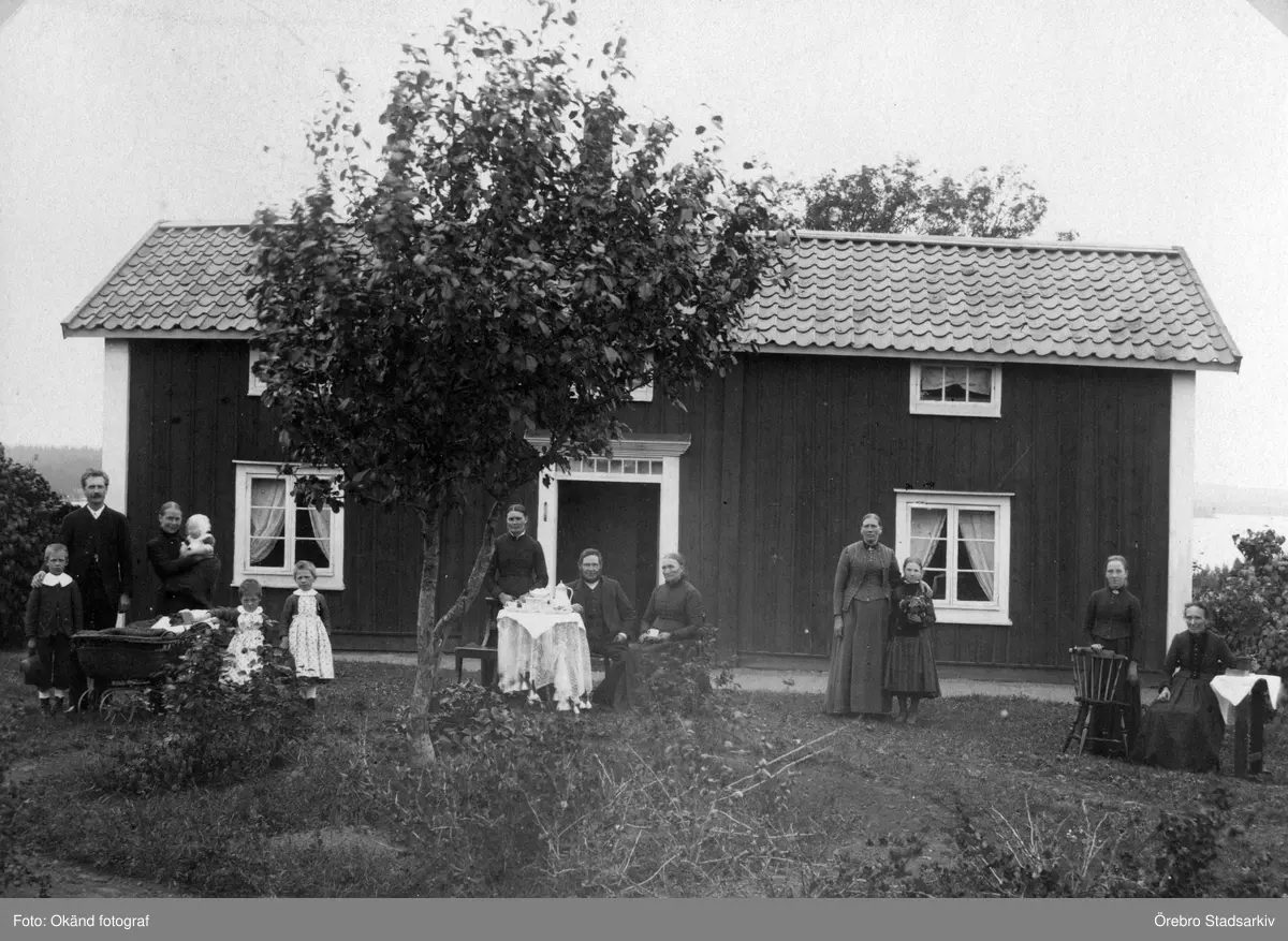 Familj framför hus i Bengtstorp i Viker 1889