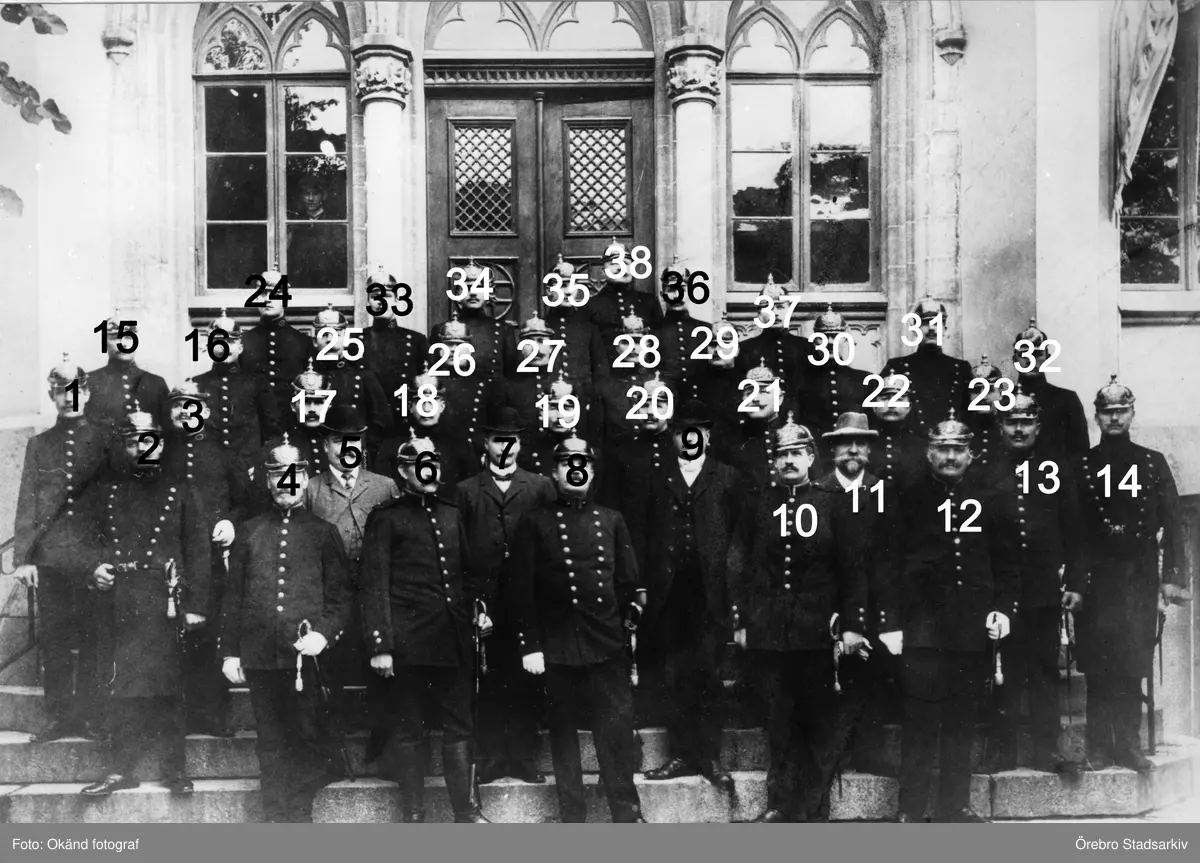 Örebro poliskår på Rådhusets trappa, 1908