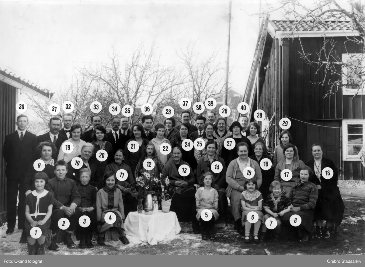 Familjefoto vid 'Kärn-Majas' 80-årskalas i Lindesberg, 1920-03-15