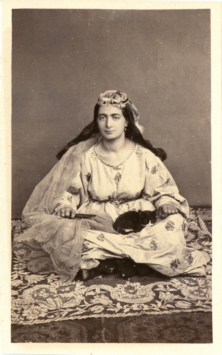 Porträtt. Kvinna med katt i famnen