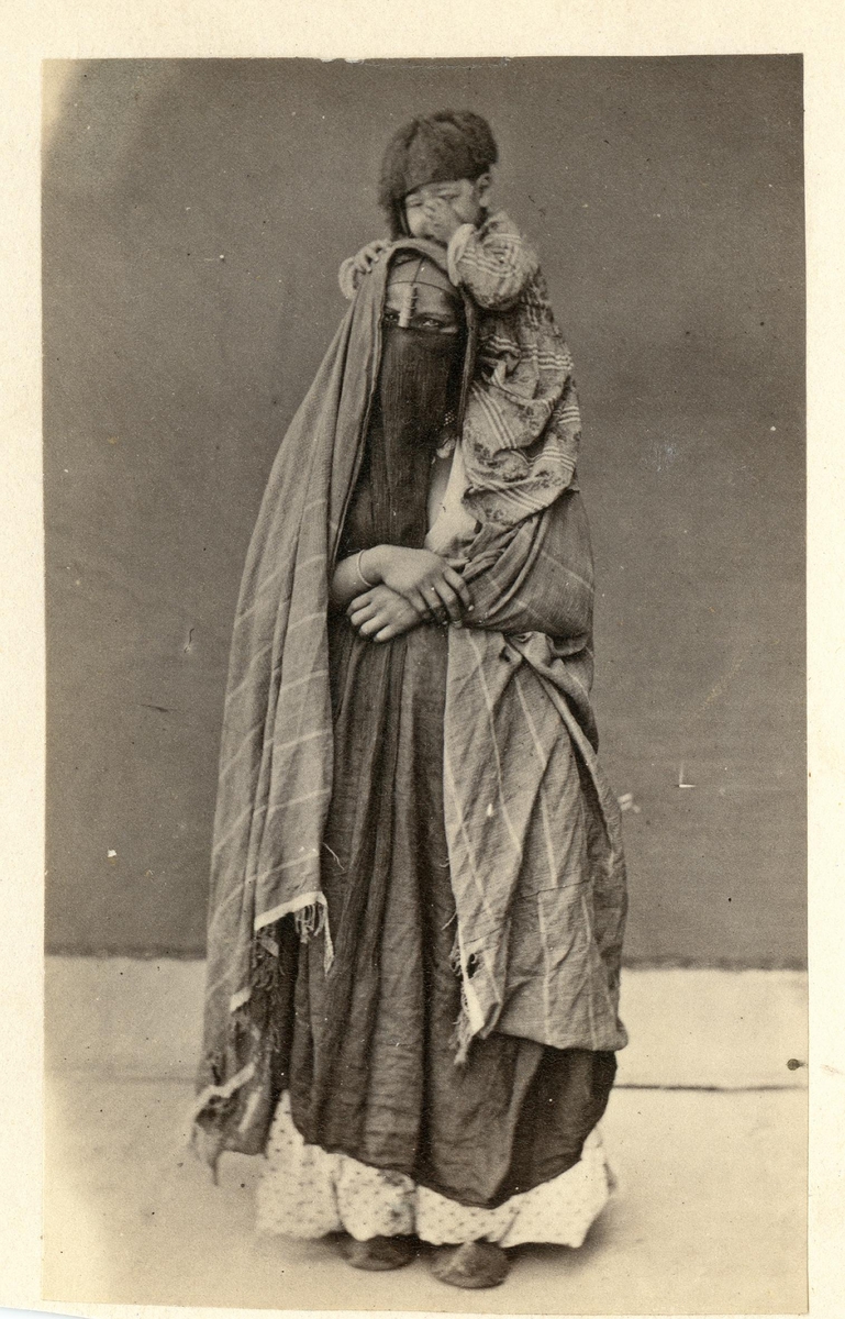Porträtt kvinna med barn. "Femme portant son enfant"