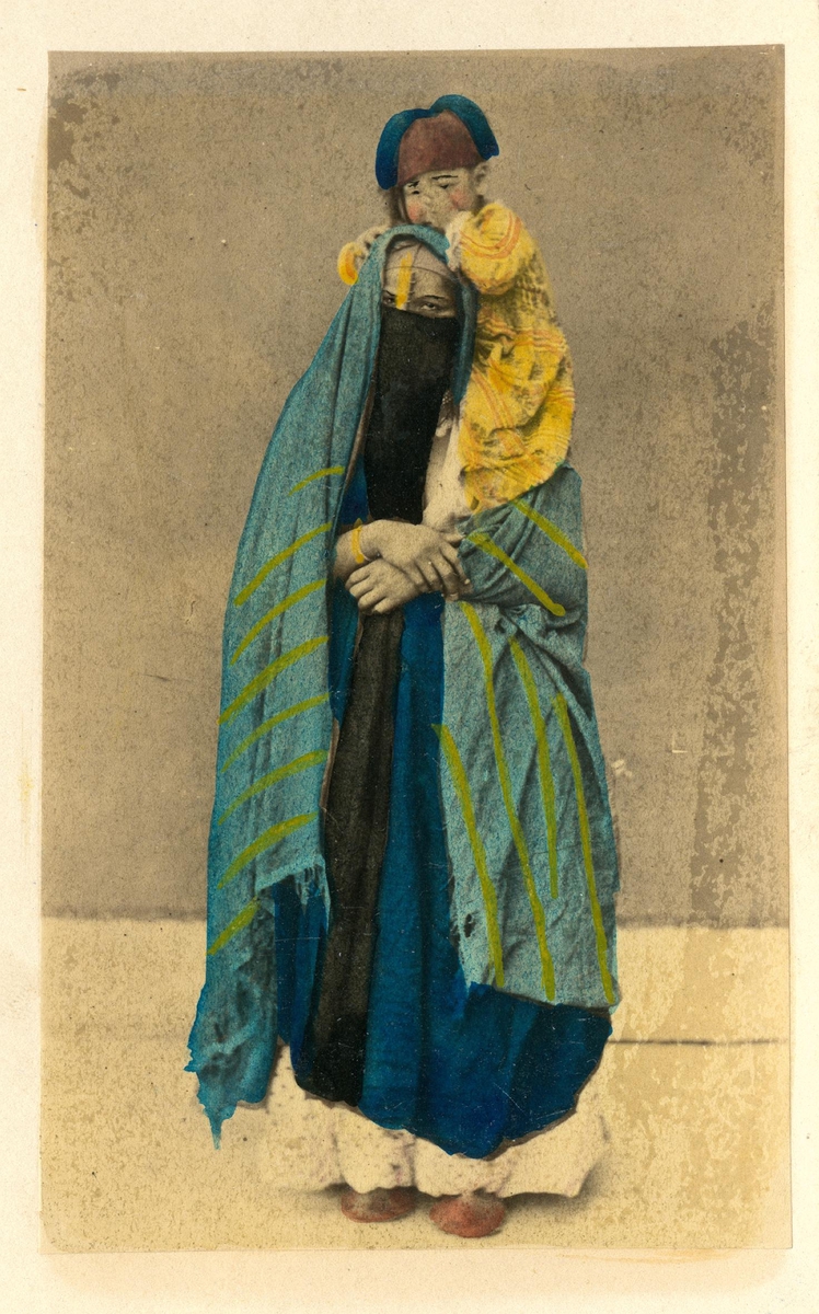 Porträtt kvinna med barn. "Femme portant son enfant"