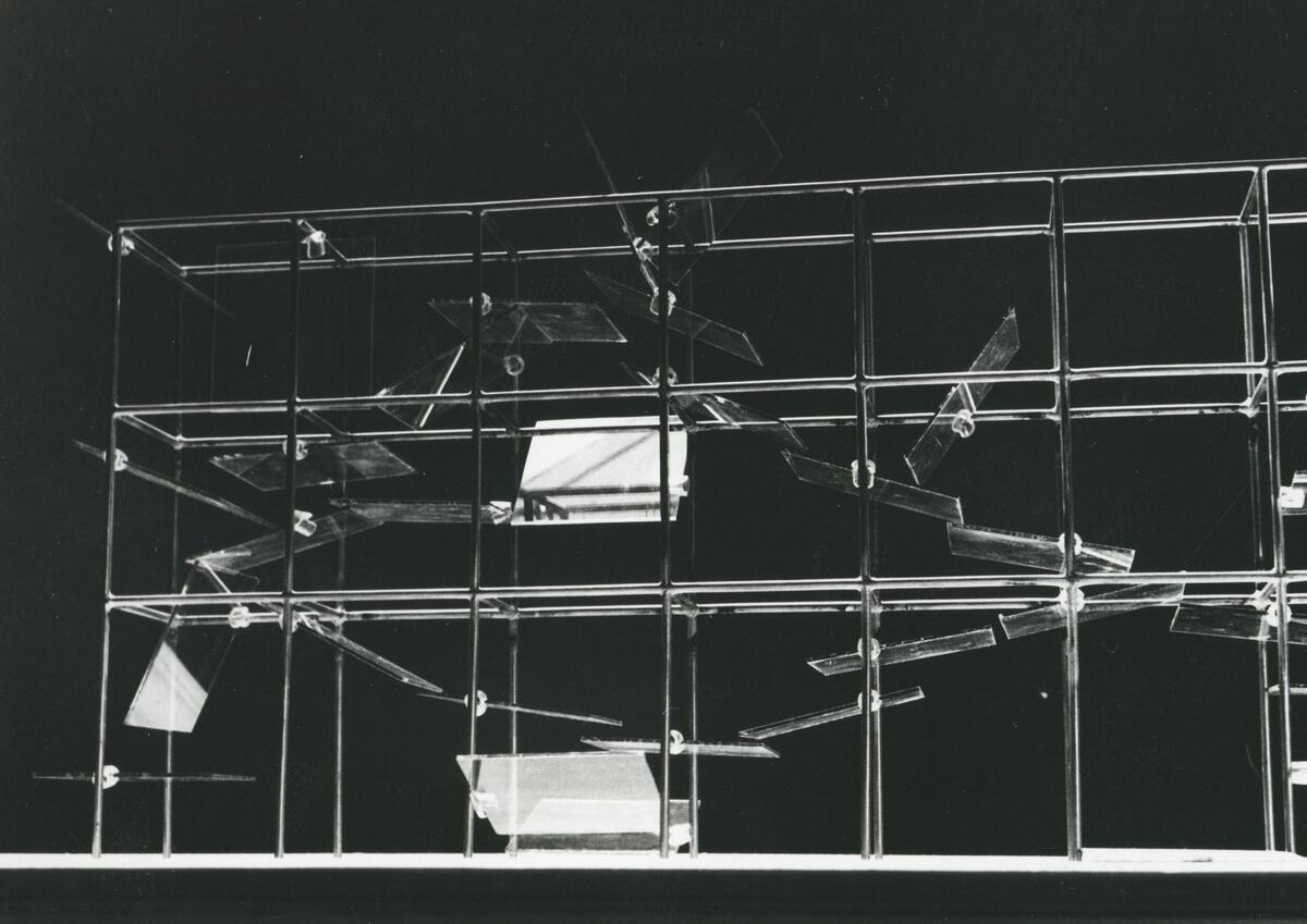 Ställning med glasplattor. Glasplattor till glasfontänen Anshelm och Jones.