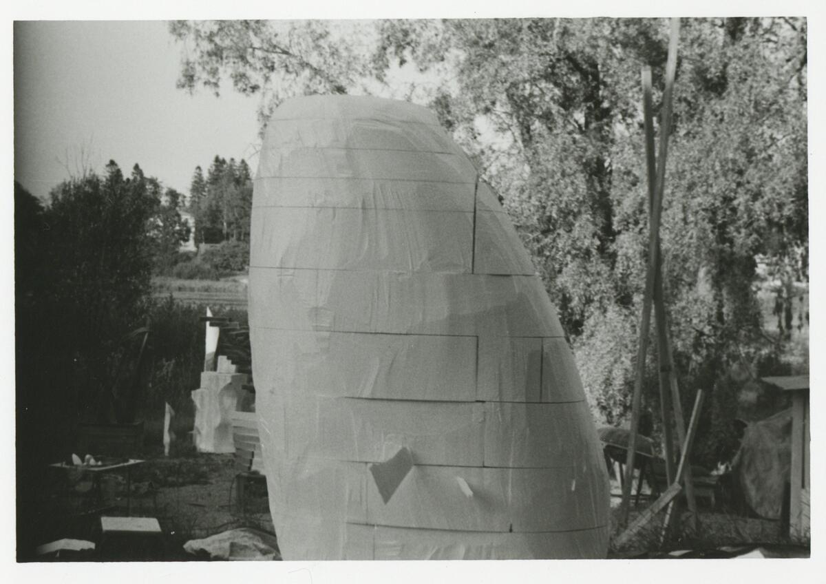 En bild av en fontänanläggning, av glasfiberarmerad plast, Sinsemellor. Sundbybergs sjukhus, Stockholm.;