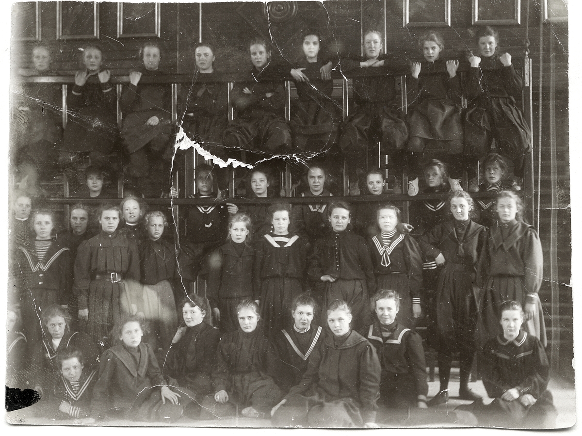 Del av Flickskolans elever i Högre allmänna läroverkets gamla gymnastiksal, 1890-talet.