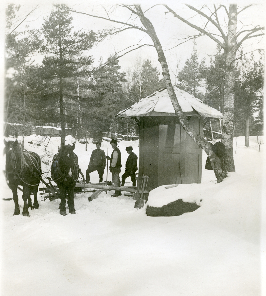 Flytt av pumphus till Vallby friluftsmuseum c:a 1928.