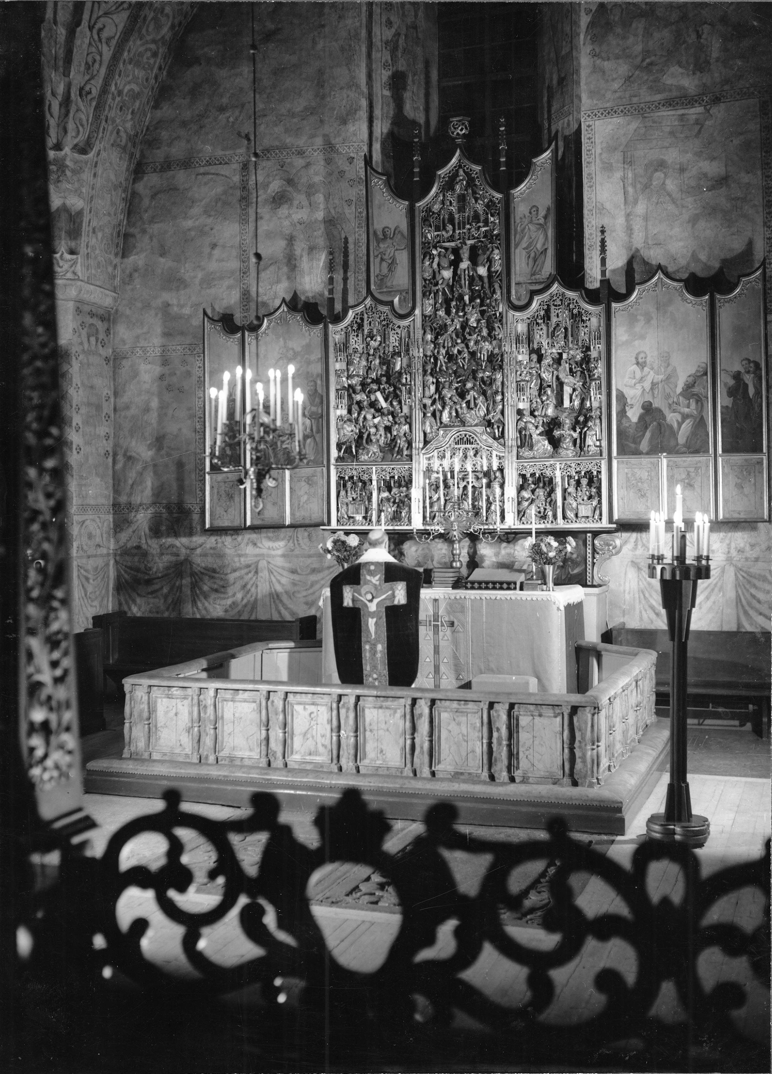 Beskrivning: Altarskåp, nederländskt 1520-talet. Ur Bertil Berthelson: "Guds hus till prydno", Stockholm 1958. I boken identiska originalfotografier i färg, av Folke Johansson och Lennart Sääf.
