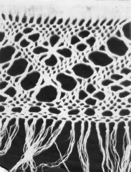 På kortets baksida: "Fransflätning. rosor och grenar enl. Karin. Hemslöjdsföreningen (portr. fr. utställningen 1914".