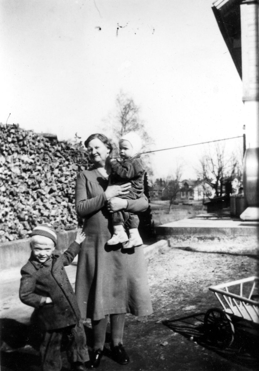 Ester Hedmark med Birgitta Helgesson på armen, pojken är Tore Helgesson.